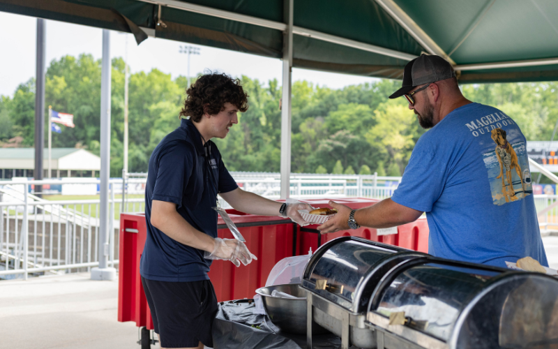 We do ask that each person grab only one entree each time through the line. This allows us to make sure everyone is served immediately at the start of the game.